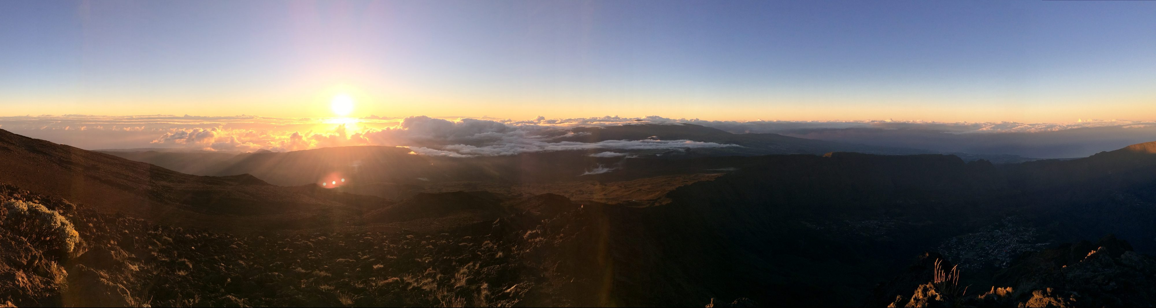Quoiqu’il en soit, cette épopée était grandiose. Départ le jeudi matin, pour arriver au gîte dans l’après-midi. Et après une courte nuit, réveil à 4h afin d’assister au lever de Soleil depuis le sommet. Avec mon père, nous avons eu la chance d’être synchronisés avec l’astre solaire, puisqu’il a dépassé l’horizon pile au moment où nous avons posé nos pieds aux 3 070 mètres nous séparant du niveau de la mer. Et le spectacle fut splendide.