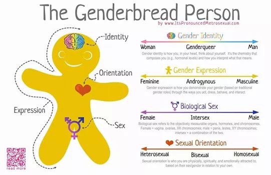 Une infographie simplifiée à propos des identités de genre, du sexe biologique et des orientations sexuelles.